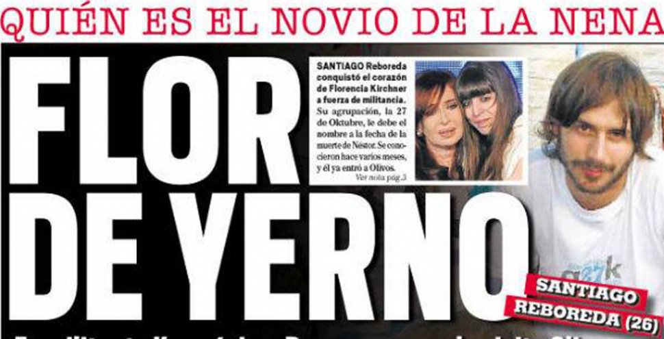 De acuerdo al diario "Libre", el novio de Florencia Kirchner se llama Santiago Reboreda, con quien estaría saliendo ya hace algunos meses. El matutino agregó que el joven ya habría pisado la quinta presidencial de Olivos, aunque descartó que se haya quedado a dormir en el sector de huéspedes. "No sé de dónde sacaron la información, pero es falsa, no tengo ningún vínculo con ella", sostuvo Reboreda.