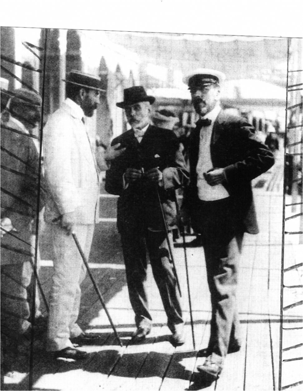PAUL GROUSSAC. Usó decenas de seudónimos. La foto lo muestra al centro, con dos amigos, en Mar del Plata. LA GACETA / ARCHIVO