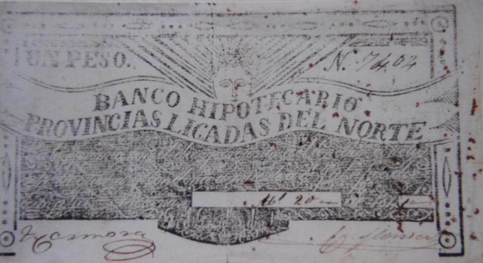 LA LIGA DEL NORTE. Billete de 1841 que emitió, en Tucumán, el efímero "Banco Hipotecario de las Provincias Ligadas del Norte". LA GACETA / ARCHIVO