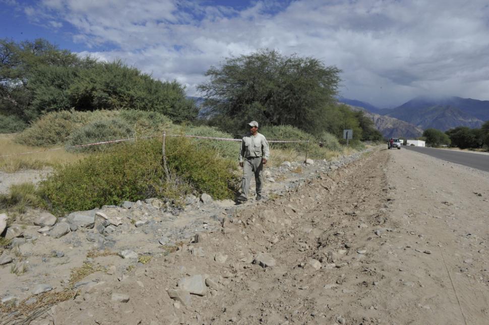 EL LUGAR SEÑALADO. Los investigadores delimitaron el lugar donde fueron hallados los restos de mujer, a la vera de una ruta de Cafayate, Salta. LA GACETA / FOTO DE OSVALDO RIPOLL