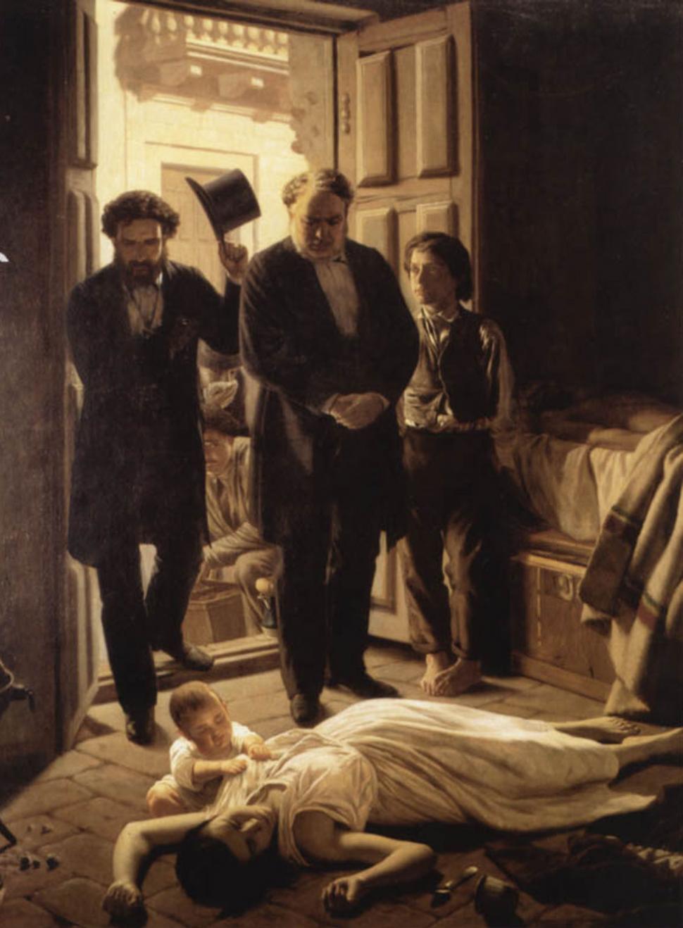 Guido y Spano toma el asunto como propio, porque sabe que un carromato municipal irá a buscar el cadáver de Luisa para arrojarlo a la fosa común. Logra conseguir un féretro, un carruaje, y antes de la medianoche arriba a la casa.