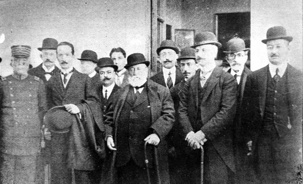 EN EL MUSEO DE BELLAS ARTES. Flanqueado por el doctor Juan Heller y el gobernador Ernesto Padilla, Saint-Saëns lleva el bastón con que empezará luego a golpear el piso.