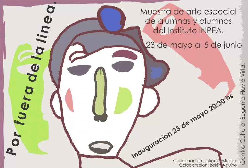 Alumnos del Instituto Privado de Educación y Adaptación (Inpea) inauguran hoy a las 20 la muestra "Por fuera de la línea". Se exhibirán en el Centro Cultural Virla (25 de Mayo 265) construcciones en papel, madera y pintura, entre otros materiales, realizadas por jóvenes y adultos.