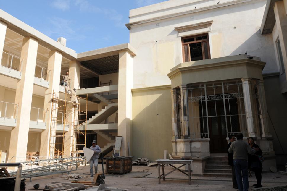 Por otra parte, también se instalaron salidas de emergencia, un bar (que se ubica en la transición entre lo antiguo y lo nuevo), un sistema de presurización contra incendios, escaleras, rampas y ascensores, espejo de agua en un costado del patio central y sanitarios en diferentes lugares del edificio. "La fecha de entrega depende de la llegada de materiales. Por ejemplo, se demoraron con las placas de revestimiento de mármol, que son importadas", apuntó Luis Bolli, de la firma contratista Beton SRL. Las obras incluyeron un adoquinado en la vereda de la calle 25 de Mayo, se renovó el muro exterior de piedra parís, se eliminaron las aberturas de los aires acondicionados y se unificó la fachada de la Facultad con la del restaurante Lisandro.