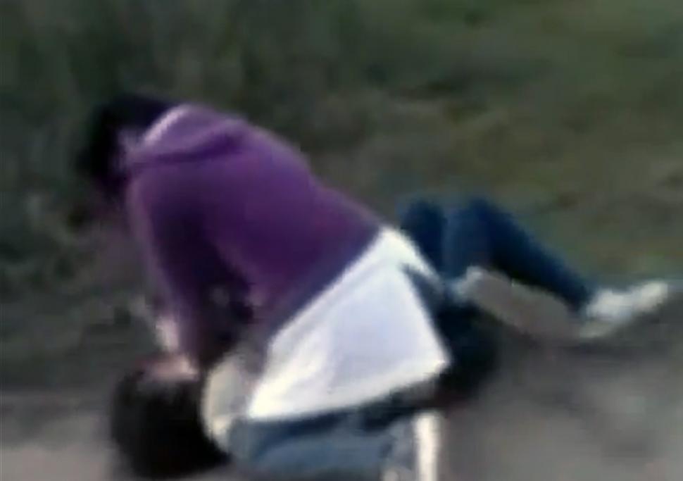 VIOLENTO CRUCE. Una de las chicas golpea duramente a la otra, y luego la arrastra de los pelos. CAPTURA DE VIDEO