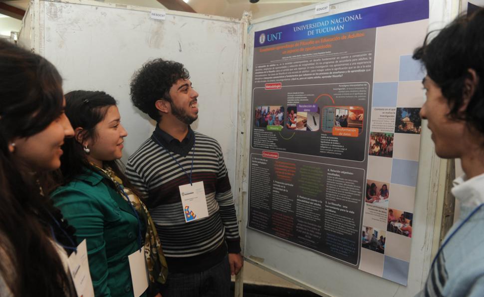 Es la primera vez que participan de las Jornadas de Jóvenes Investigadores, por lo que aseguran que con esta experiencia enriquecen sus estudios en la carrera de Ciencias de la Educación. Lucas Stambole, María José Ale, Hugo Sánchez y Julieta Dávila presentaron "Enzeñanza-aprendizaje de Filosofía en educación de adultos: un espacio de oportunidades". "Tomamos como punto de partida el dictado de la materia Filosofía en un grupo de alumnos de una institución para adultos en Tucumán. Hablamos de oportunidades, porque con la Filosofía se pueden obtener herramientas para la vida cotidiana de esos estudiantes y superar el modelo academicista", destacaron.