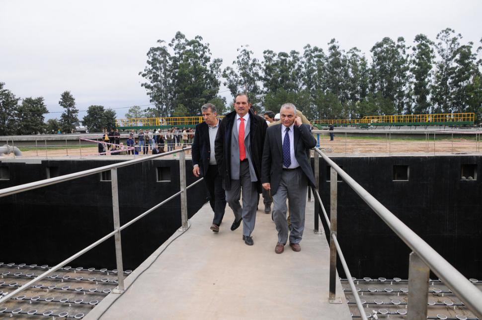 MEJORAS SANITARIAS. Alperovich recorrió ayer las obras en una planta de tratamiento de líquidos cloacales. PRENSA Y DIFUSIóN