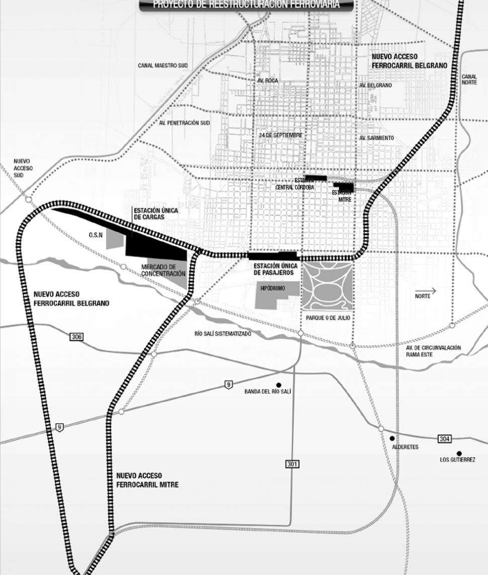 De Marchi contrató las consultoras ferroviarias Conarsud (Consultora Argentina de Sudamérica) y Sofreriel (de origen francés). Ambas elaboraron el proyecto de obra. "La estación única de cargas de trocha métrica debía construirse en Los Vázquez y la única de pasajeros, en El Bajo, en la estación Tucuman N (ex San Cristóbal). En realidad esta última debía ser remodelada y ampliada. Y el nuevo acceso del entonces Ferrocarril Mitre debía arrancar de la estación Cruz del Norte", subrayó Rossi.