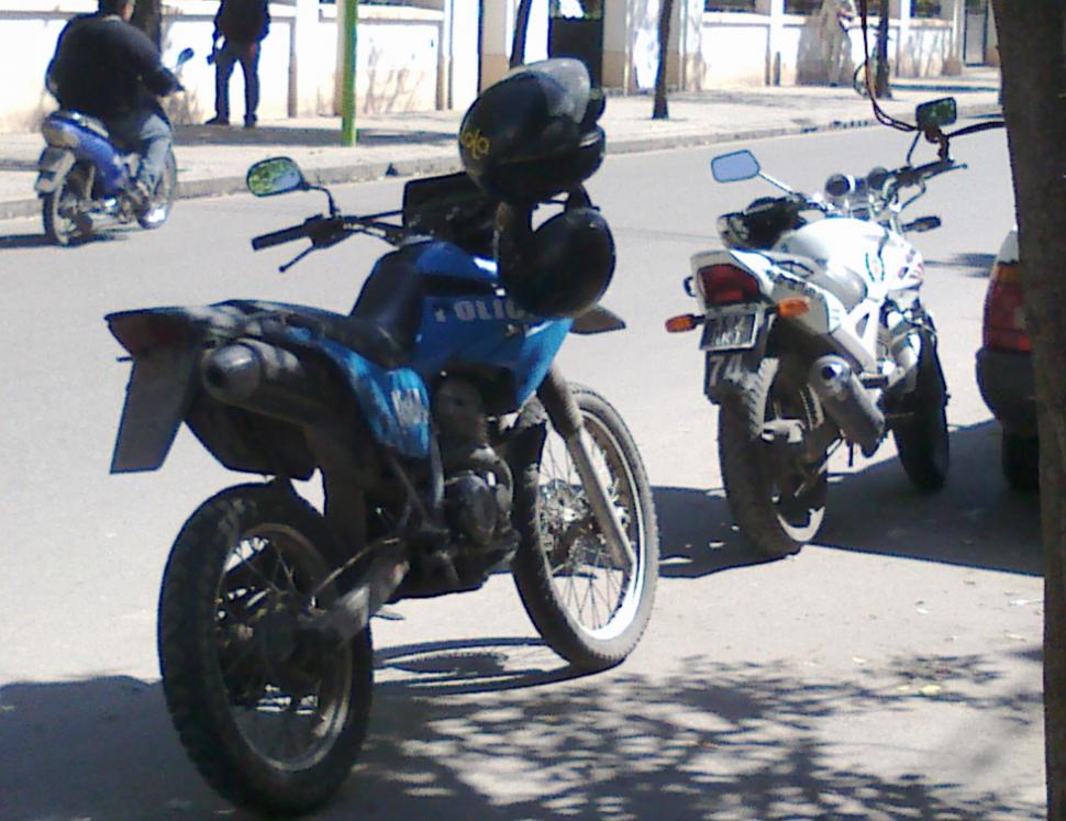 "En la esquina de Ayacucho y Lamadrid, en la puerta de la UNT, estos personajes estacionan donde quieren y ante la presencia de quienes deben hacer cumplir las exigencias de tránsito. Sin patente ni guiño, la moto azul de la policía. La moto blanca es de la policía municipal".