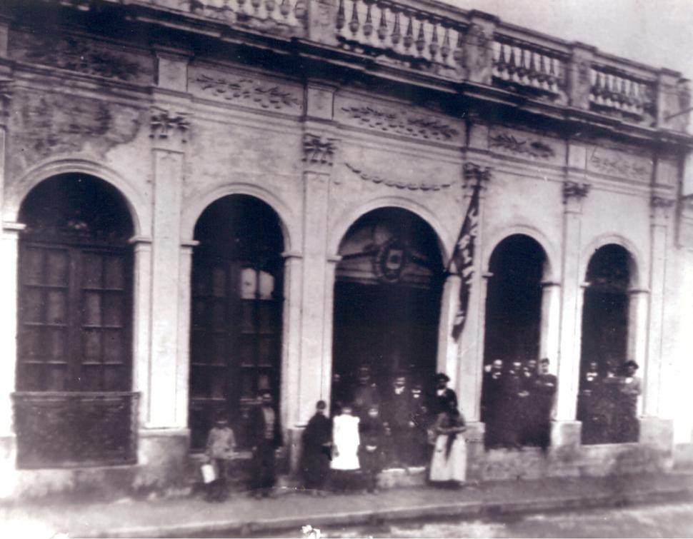 EL PRIMER LOCAL. En 1900 se tomó esta imagen de la fachada del Banco Municipal de Préstamos, que funcionaba en Alsina (hoy Las Heras) al 100. LA GACETA / ARCHIVO