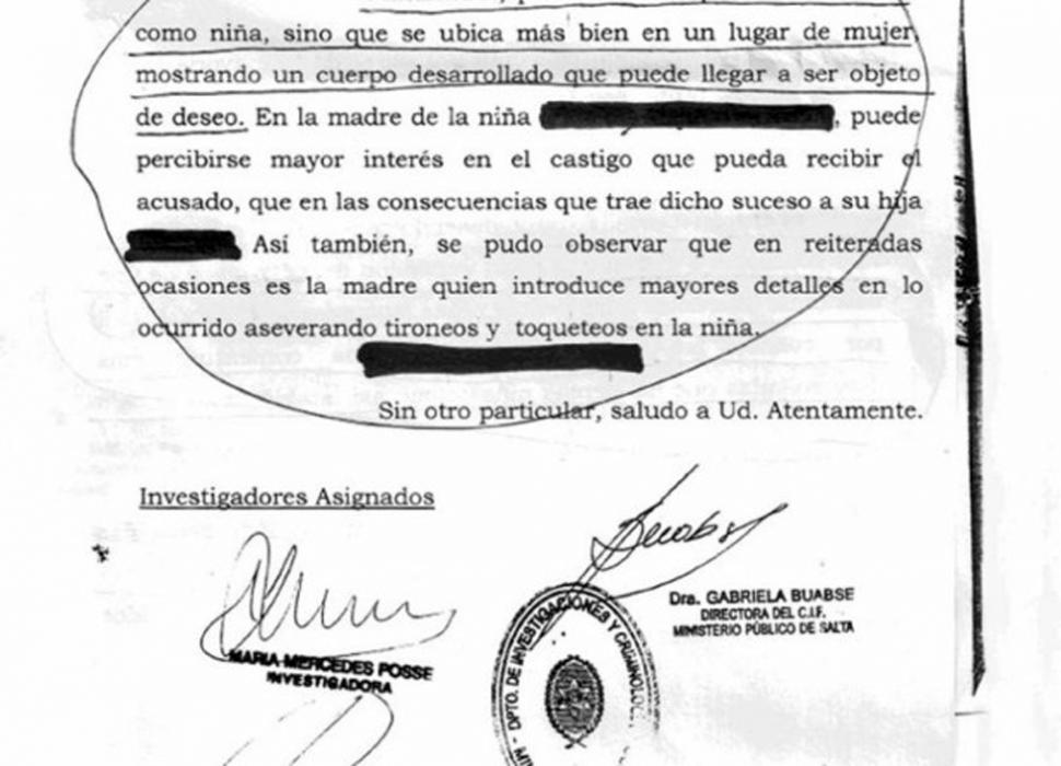 SALTA.- Un informe elaborado por el Cuerpo de Investigaciones Fiscales (CIF) de la Justicia de Salta generó una gran polémica, al señalar, ante una denuncia contra el chofer de un micro escolar por supuestos abusos sexuales contra menores de edad, que una niña de nueve años "muestra un cuerpo desarrollado que puede llegar a ser objeto de deseo".