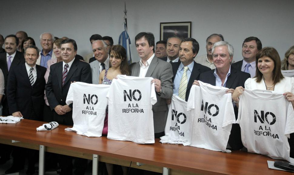 BUENOS AIRES.- Diputados nacionales de la oposición presentaron un documento con 107 firmas en el que se comprometieron a no apoyar una posible reforma constitucional para permitir una re-reelección presidencial.