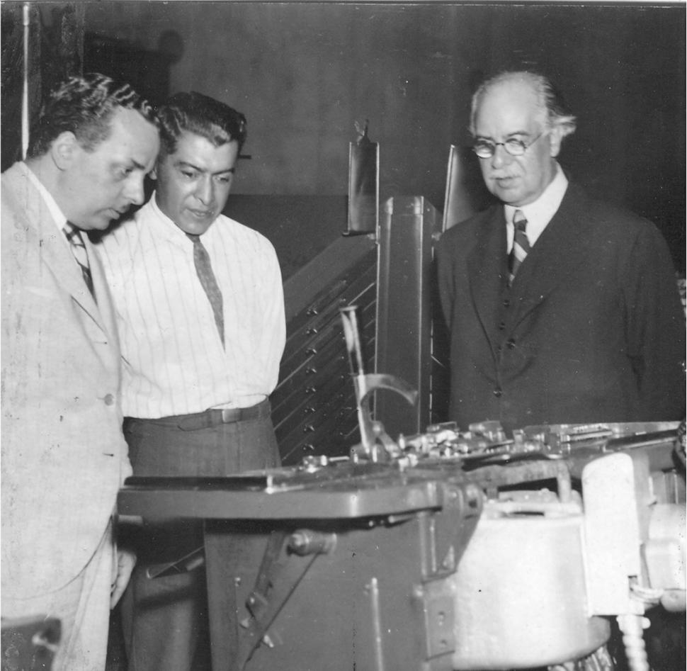 RICARDO ROJAS EN "LA GACETA". El destacado literato aparece a la izquierda, en nuestro taller gráfico. A la derecha, el codirector del diario, Alfredo Coviello. LA GACETA / ARCHIVO