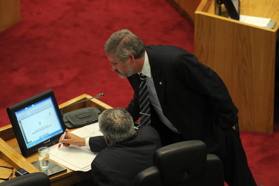 VOCEROS. González Navarro, de pie, habla con Roque Álvarez. Ambos defenderán el Presupuesto 2013. LA GACETA / FOTO DE ANALíA JARAMILLO (ARCHIVO)