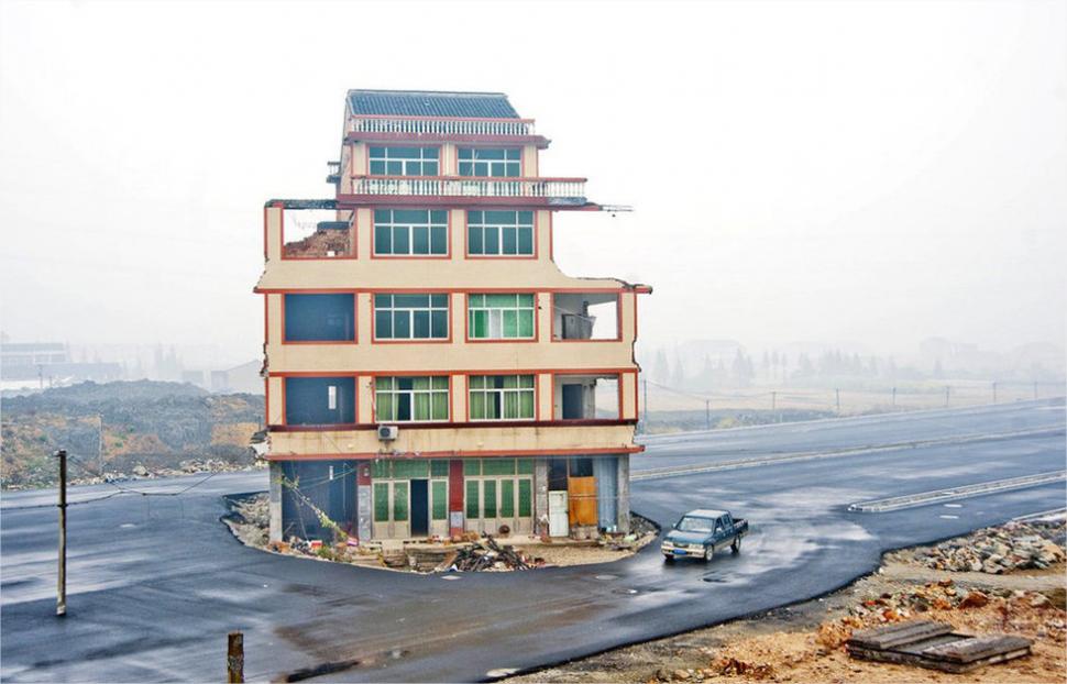 CHINA.- Una casa se mantiene firme en medio de una autopista, mientras los autos la bordean. La imagen no es un cuadro subrealista ni un buen photoshop, es lo que sucede cuando se cruzan dos intereses y no se llega a un acuerdo.