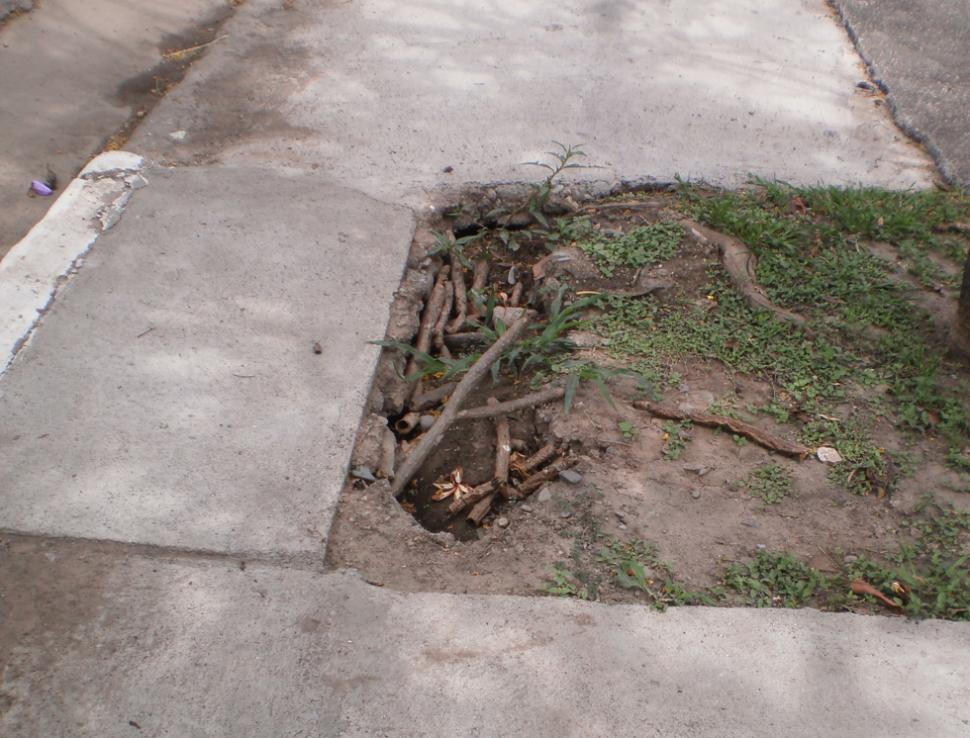 "Con estas fotos demuestro que la SAT no cumplió con la reparación de veredas en Luis Drago al 200. Con las últimas lluvias se hundió el cierre que efectuaron luego de cambiar caños de cloacas. Esperamos que urgente efectuen los arreglos correspondientes".