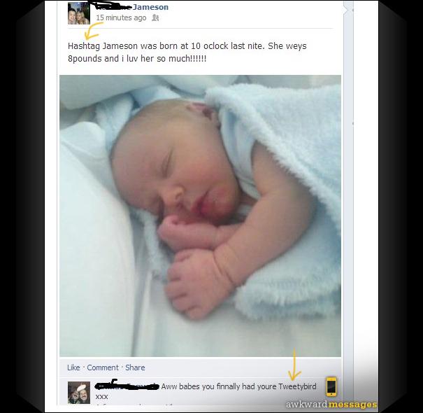 ¿UNA BROMA? Muchos se preguntan si de verdad los padres de la nena la llamaron "Hashtag". FOTO TOMADA DE AWKWARDMESSAGES.COM