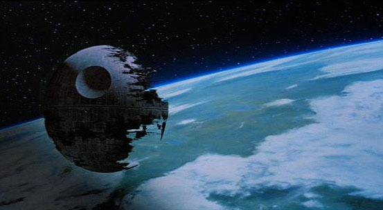 La "Estrella de la Muerte" es una estación espacial creada por George Lucas en la saga de 'La Guerra de las Galaxias'. Su tripulación estaba compuesta por 825.984 stormtroopers, 87.001 oficiales imperiales, 368.685 auxiliares y más de 100.000 pilotos soldados y pasajeros civiles. Su diámetro alcanzaba los 160 kilómetros, en su primera versión, y 900 en la segunda (No fue terminada). Entre sus armas estaba un poderoso láser, capaz de destruir planetas.