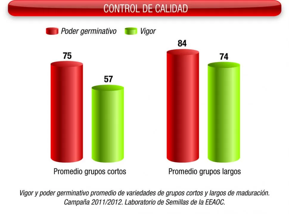 Se determinó que en general las variedades de grupos cortos de maduración fueron las más afectadas en cuanto al vigor y poder germinativo de la semilla, mientras que las variedades de los grupos más largos presentaron mejor calidad. (ver infograma).