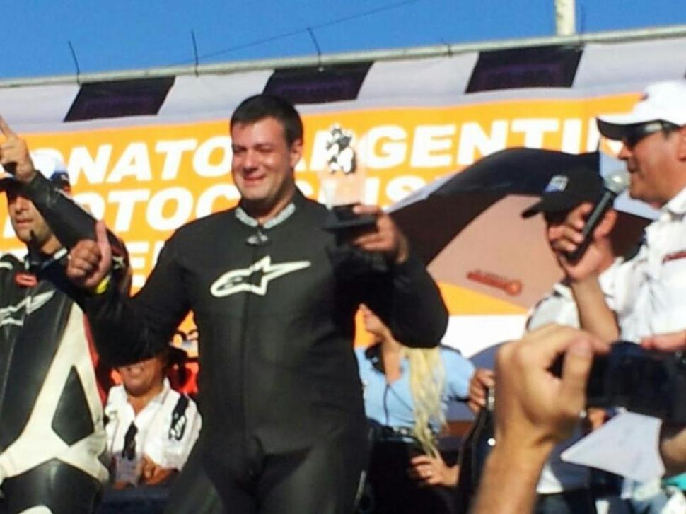 "Me siento feliz, esto es algo que vine a buscar. Para mí, el motociclismo no deja de ser una diversión. Pongo mucho esfuerzo propio para poder estar, y hacerlo mano a mano ante estructuras más grandes, es un aliciente" contó Mendilaharzu, que ocupó el último lugar del podio, detrás del campeón Adrián Russeau y del bonaerense César Tell. En carrera, libró con ellos una intensa lucha. (Especial)