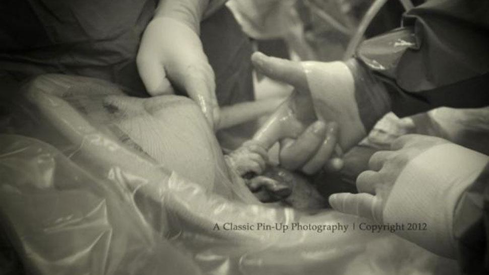 Todo comenzó cuando Alicia Atkins dio a luz a su hija, Nevaeh, mediante cesárea el 9 de octubre de 2012. En ese momento, su esposo, Randy, tomó la conmovedora foto de su beba saliendo al mundo, justo en el momento que agarra los dedos del médico que asiste a su madre durante la cesárea.