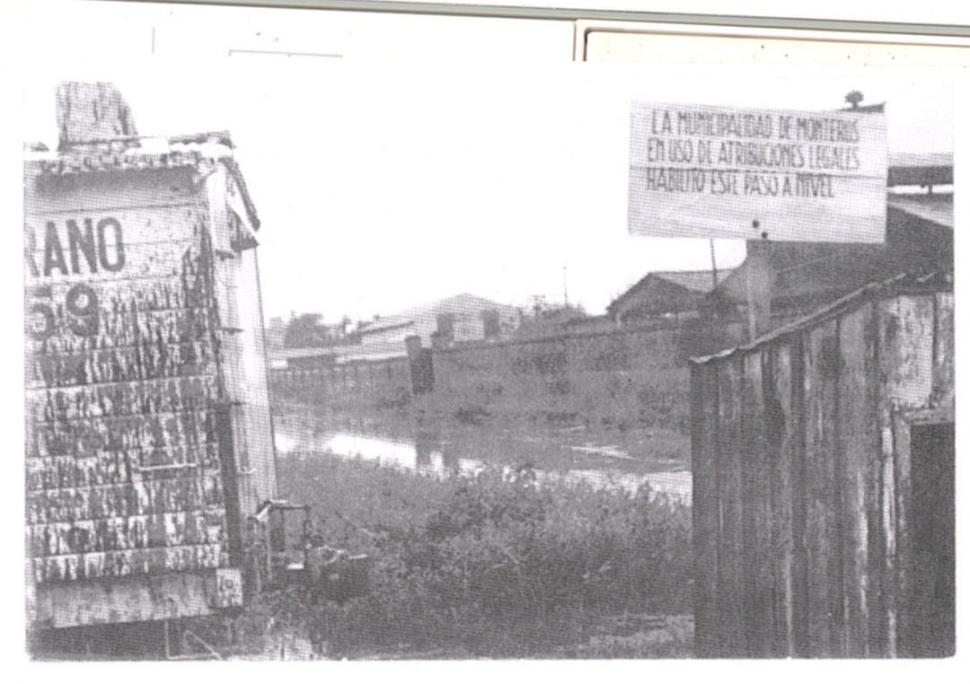 PASO A NIVEL.- "En la intendencia de don Jorge Curi (padre), en el período 1958-1962, se intentó abrir un paso a nivel sobre la calle Silvano Bores. El Ferrocarril General Belgrano, que por entonces administraba la linea de El Provincial, no se lo permitió. Pero el lord mayor monterizo lo abrió de oficio según consigna el cartel de la foto de la derecha (La Municipalidad de Monteros en uso de atribuciones ilegales habilita este paso a nivel). El hecho sucedió allá por 1959 cuando aún circulaban los trenes y el ferrocarril nunca lo cerró". La anécdota fue contada por el memorioso Tulio Santiago Ottonello.