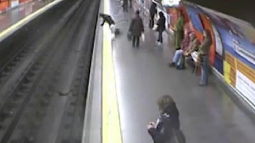 MADRID, España.- Una mujer fue rescatada luego de sufrir un desmayo y caer sobre las vías del metro de Madrid, justo cuando la formación ingresaba a la estación.