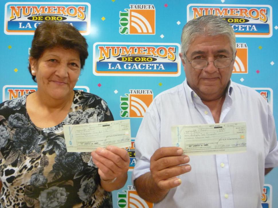 Elsa del Valle Figueroa y José Facundo Andrade compartieron el pozo de $ 30.000 de los Números de Oro de LA GACETA y cada uno se llevó $ 15.000. Para Elsa, de Alderetes, el premio fue un regalo anticipado de cumpleaños: cumple el próximo miércoles. Además, usará el dinero para construir la tapia de su casa. Contó que cuando completó la grilla estaba tan nerviosa que sus nietos le decían: "abuela, respirá". José, taxista, aprovechará el premio para concluir las obras del galpón que levantó en la parte de atrás de su vivienda. Dijo que estaba trabajando, en su taxi y solo, cuando se dio cuenta de que había ganado.