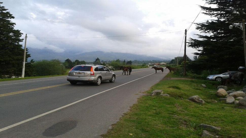 Los autos, las camionetas y los colectivos no fueron los únicos que invadieron la ruta 307 ayer por la tarde. También lo hicieron las vacas y los caballos sueltos que se pasearon tranquilamente por la cinta asfáltica obligando a muchos conductores a realizar maniobras bruscas para esquivarlos.