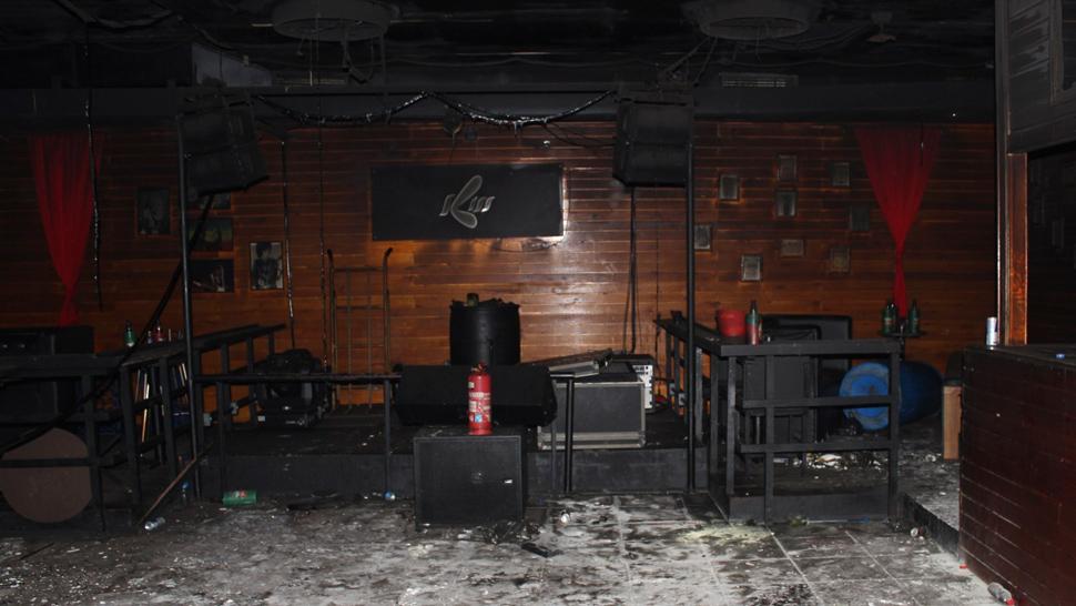 DESTRUIDO. El interior del boliche quedó consumido por el fuego y manchado por el denso humo negro que invadió el lugar. REUTERS