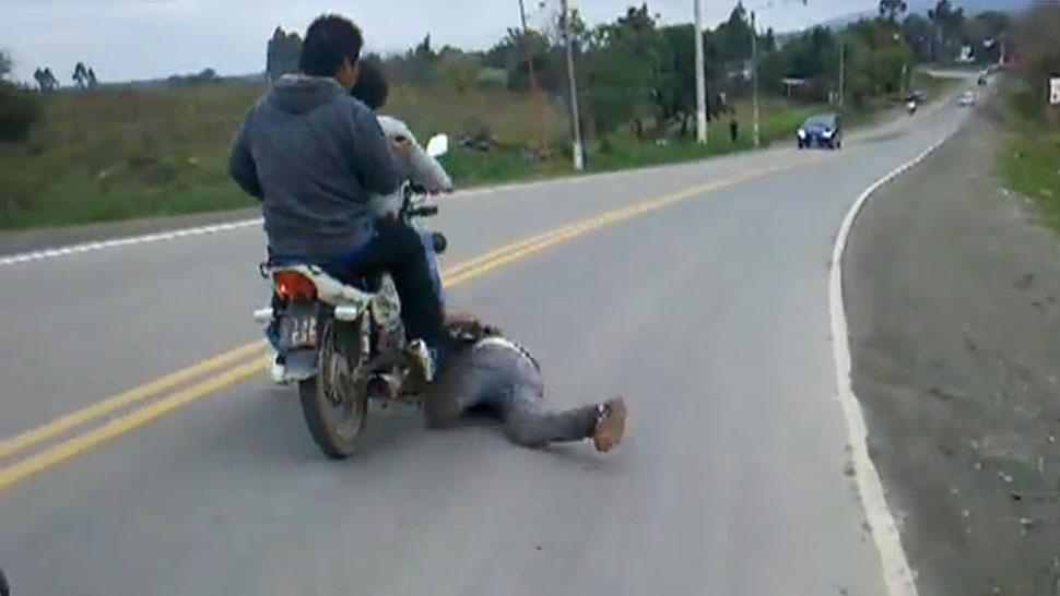 Un joven que practicaba longboard sin protección y de manera imprudente en Yerba Buena fue atropellado por una moto que conducían sus amigos luego de perder el equilibrio y caer en el pavimento. El accidente fue filmado por uno de sus conocidos, que compartió la grabación de medio minuto en el portal de YouTube. En la grabación se observa a un muchacho sobre la tabla, quien se agarra de unos amigos que viajan en moto a la par suya. Al encarar una bajada, ya en velocidad, el "aventurero" se aparta del vehículo, pero pierde el equilibrio rápidamente y cae sobre el pavimento. La moto, que circulaba muy cerca suyo, lo golpea y le pasa por encima de uno de sus brazos. Ni los motociclistas ni el joven llevaban casco.