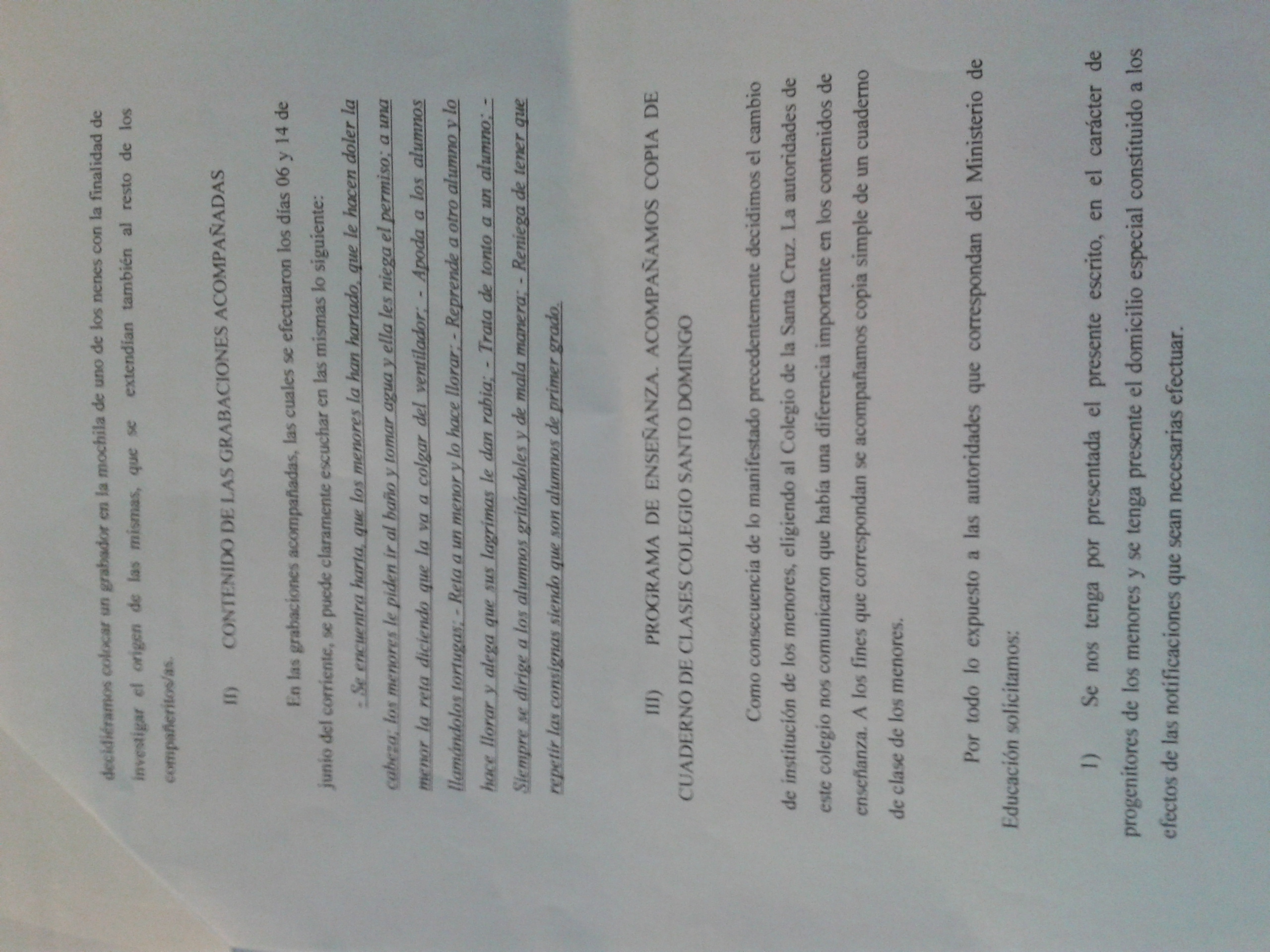 "Llegado ese día, fuimos acompañadas por la abogada hacia dicha reunión. En la misma se encontraban presentes la supervisora de la zona 10, Nelly Rodríguez; la dueña del Colegio, la directora y la docente del grado. De esta manera, la abogada les comunicó la existencia del audio, el que fue escuchado por los presentes en la reunión, y allí se labró un acta posteriormente firmada por los presentes.