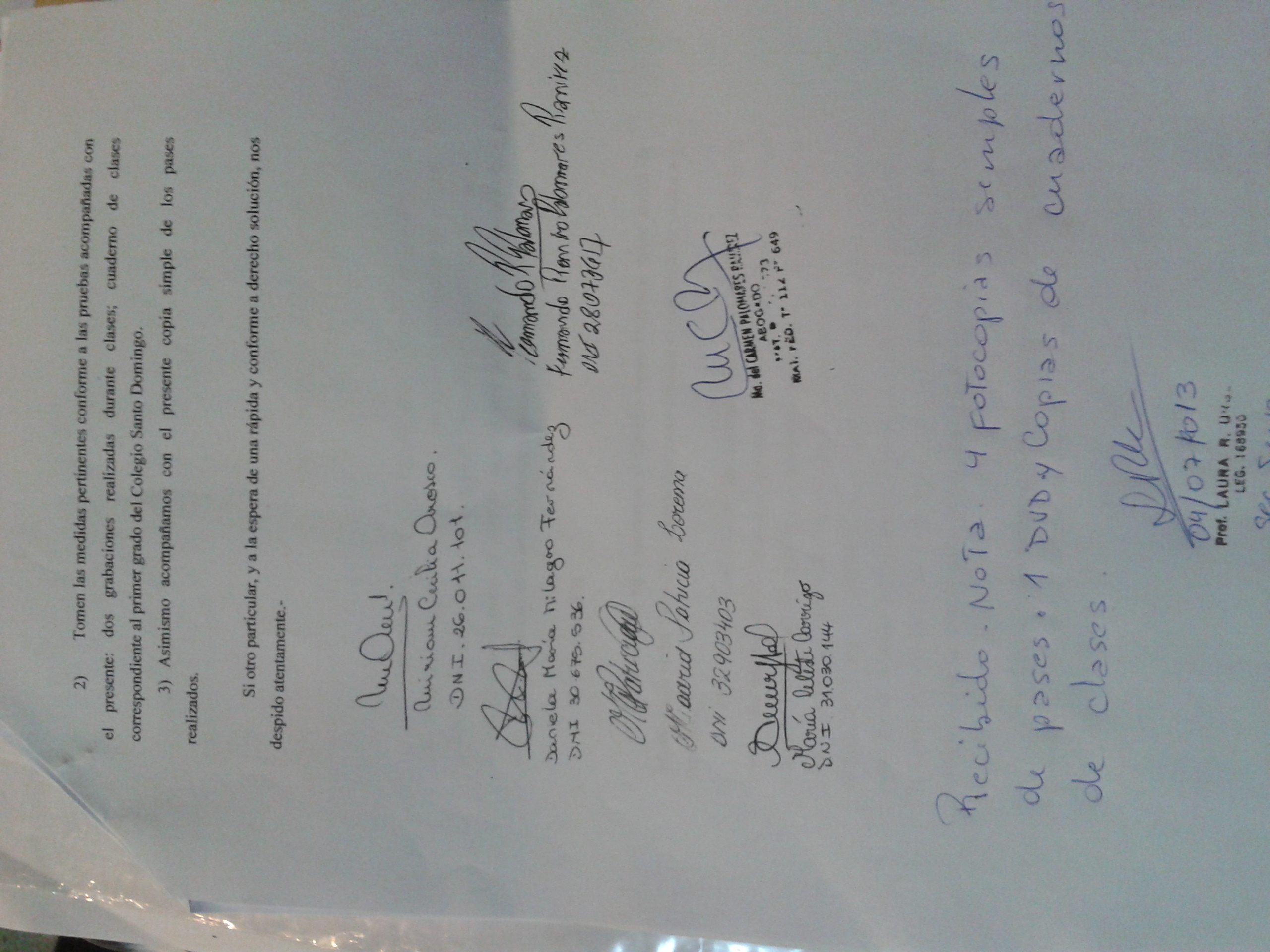 Finalmente, al tener las pruebas, entre todos los padres (seis en total) se pusieron de acuerdo para sacar a sus hijos de primer grado del colegio."El día martes 18 fuimos a solicitar el pase a otro lugar. La directora no nos dio el mejor de los tratos y nos dijo que el pase lo buscáramos la semana entrante porque debía haber un motivo. En la siguiente semana recibimos un llamado telefónico por parte de la docente para comunicarnos que el día martes 25/6 debíamos ir al colegio porque teníamos reunión con la Supervisora", dijo.