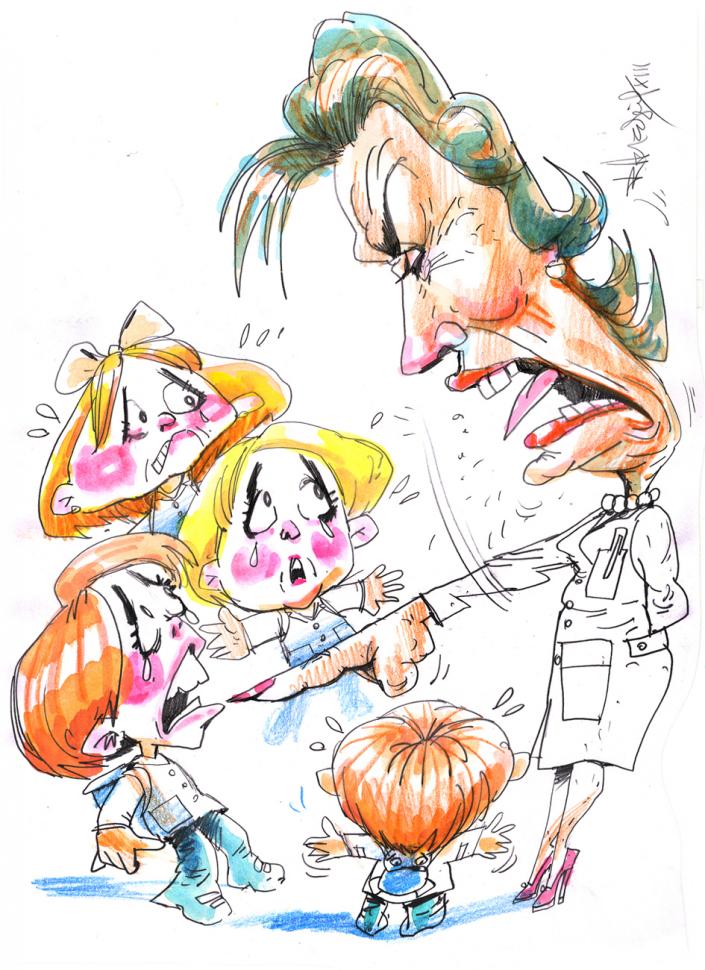 GRITOS. La maestra de primer grado insultaba a sus alumnos. LA GACETA / DIBUJO DE RICARDO HEREDIA