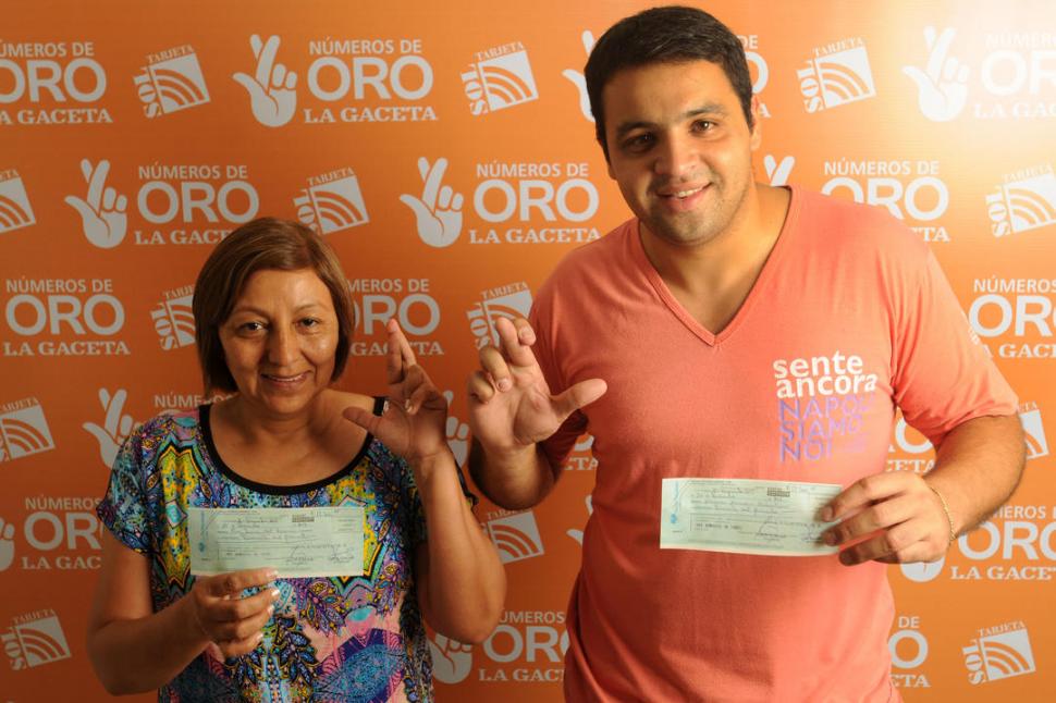 LECTORES AFORTUNADOS. Juana del Rosario Cruz y Mauricio Maximiliano Navarro posan con sus cheques. la gaceta / foto de Inés Quinteros Orio