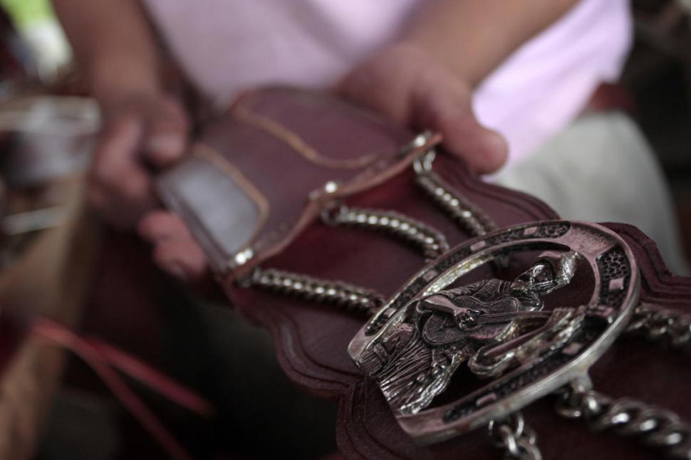“Lo que sea en cuero”, resume mientras enseña llaveros, billeteras y las distintas partes de una silla para caballo. “Ahora queremos hacer sillones, chalecos y bolsos”, agrega González, que durante 10 años se dedicó al arreglo de monturas y hoy tiene hasta una página en Facebook (Talabartería Don José) donde publica sus productos y recibe encargos. “Lo que más hacemos son monturas”, informa y dice que la confección de una sola insume, en promedio, un mes de labor.