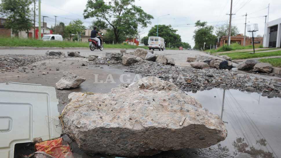 PELIGRO. Los pedazos de concreto se encuentran depositados sobre la calzada. LA GACETA / HECTOR PERALTA
