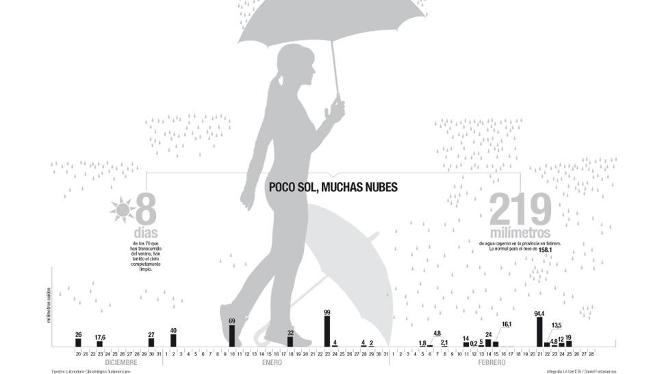Pero más allá de las lluvias, el estado climático que prevaleció en enero y febrero fue la inestabilidad o los días nublados. Forciniti, de la EEOC, estimó que “entre el 24 de enero y el 28 de febrero hubo 19 días nublados”. Por esto, cuando salió el sol, en las villas veraniegas y en las piletas se vivió una verdadera fiesta. Además, las temperaturas de febrero no fueron tan insoportables como las de diciembre y enero.