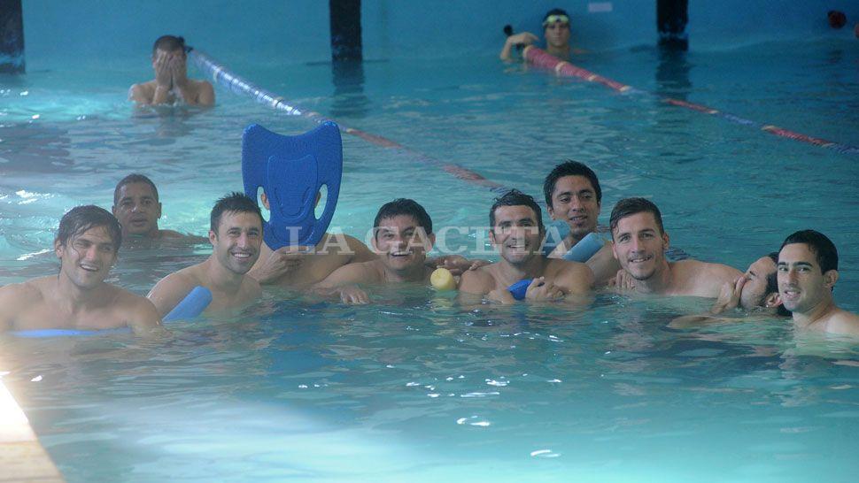 AL AGUA. Para descontracturar, los jugadores eligieron la pileta del complejo Ojo de Agua. LA GACETA / ANTONIO FERRONI