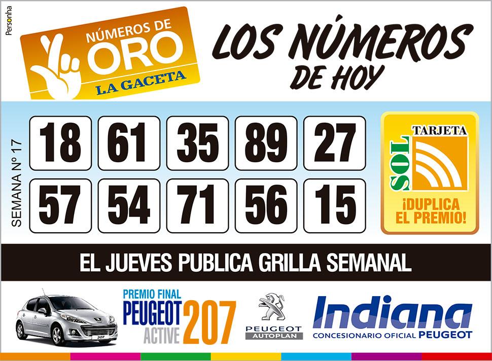 Esta es la grilla completa de los Números de Oro de LA GACETA del 25 de febrero de 2026