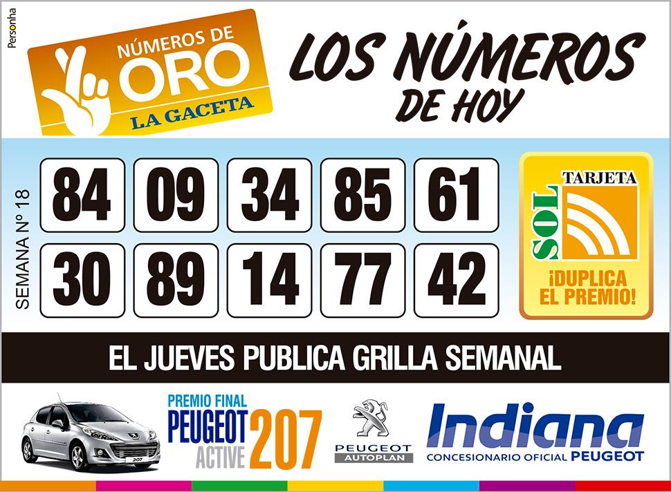 Esta es la grilla completa de los Números de Oro de LA GACETA del 25 de febrero de 2026