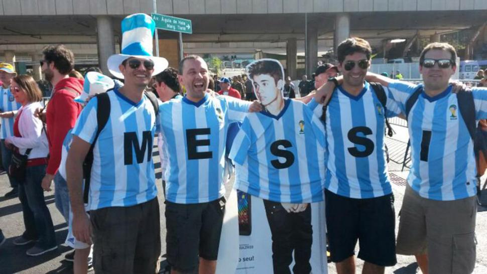 Y si de locuras se trata, ¿hay algo comparable a convertir a Justin Bieber en hincha de la Selección? Son cuatro porteños que se identifican como Francisco, Seba, Fer y Tavo, y posan para las fotos con una gigantografía del cantante. “La encontramos tirada en una esquina de San Pablo. ‘Che, pero Justin no tiene equipo’, dijo uno. Entonces lo hicimos de Argentina. Le pusimos una camiseta y todo”, sostienen. Y ahí fue el Justin de cartón, con la albiceleste de Messi y rumbo a las tribunas del Arena Corinthians.