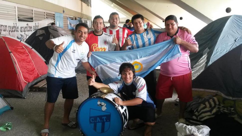 “La convivencia es genial. Los hinchas se unieron por la Argentina y lo demás queda de lado. Ni con los brasileños tenemos problemas, pese a que de noche pasan y tiran un par de bombas para despertarnos. Claro que no se animan a entrar. Hacemos la nuestra y queremos que ya sea domingo. Hay muchos policías, pero no nos dicen nada, sólo vigilan”, comenta Aráoz.