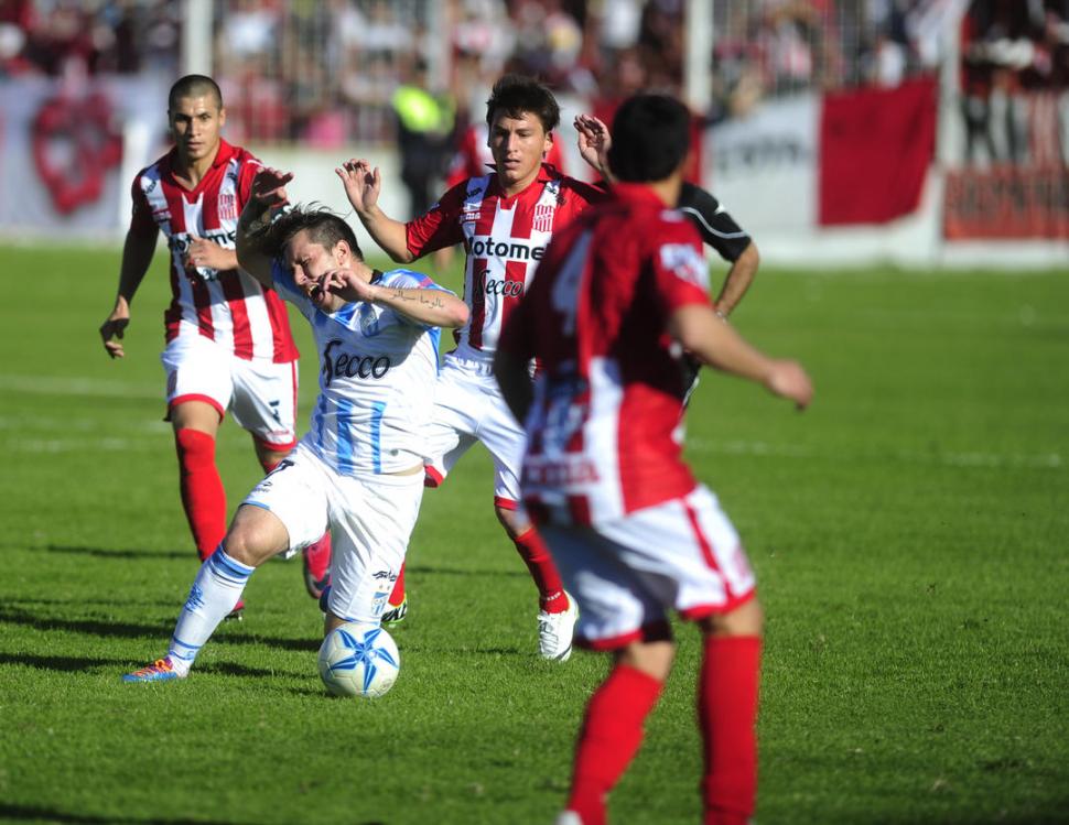 BUEN DEBUT. Gómez, que en la imagen recibe una falta Becica, fue determinante en Atlético cuando pasó mitad de cancha.