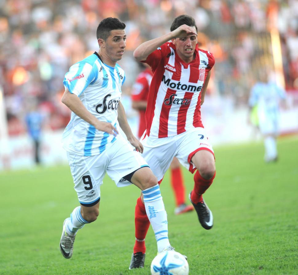 PERMISO. García le gana en velocidad a Bossio y encara hacia el arco de Pave. El extremo se movió bien por los dos carriles. LA GACETA / FOTO DE HECTOR PERALTA