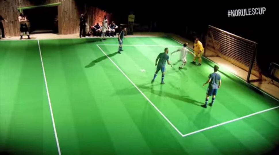 En una pequeña cancha sintética con apenas un arco los protagonistas intentar reflejar de la manera más parecida posible cada uno de los goles que quedarán en la historia. Claro, con un tinte de comicidad.