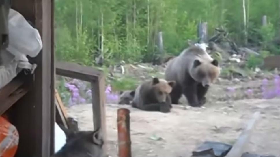Mientras el perro lograba ahuyentar a los pequeños osos, uno de los obreros decidió filmar el hecho, sin percatarse que por detrás se asomaría una osa de mayor tamaño, que sería la madre de los primeros.