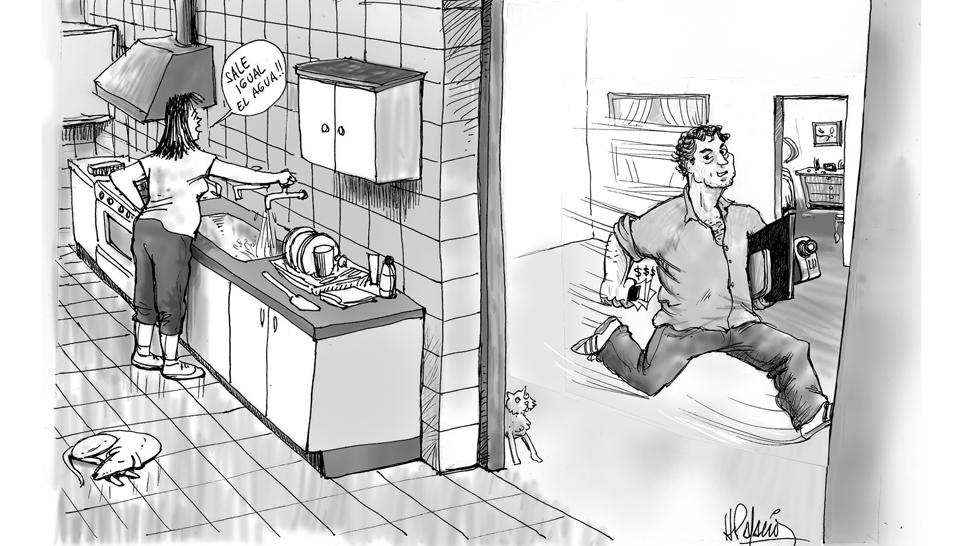 Llegó como caído del cielo para ofrecer sus servicios de plomería, rápido y a buen precio. Pero no hizo más que estudiar los movimientos de la víctima para que, al momento de ser contratado, pudiera robar la mayor cantidad de elementos posibles en pocos minutos. Fabiana Mambrini es peluquera y cayó en ese engaño. Según contó a este diario, el hombre se presentó en su local hace dos semanas y dijo llamarse César. Sin embargo, cuando regresó varios días después, se presentó como Jorge. “Bueno, César Jorge”, se corrigió rápidamente. La peluquera le explicó que tenía una pérdida de agua en el baño de su casa, ubicada en calle Estados Unidos primera cuadra, y fijaron una cita para el martes a las 17.30. Pero el falso plomero, que ya había registrado los horarios de Mambrini, se presentó una hora antes, cuando en la vivienda sólo se encontraba la empleada doméstica.