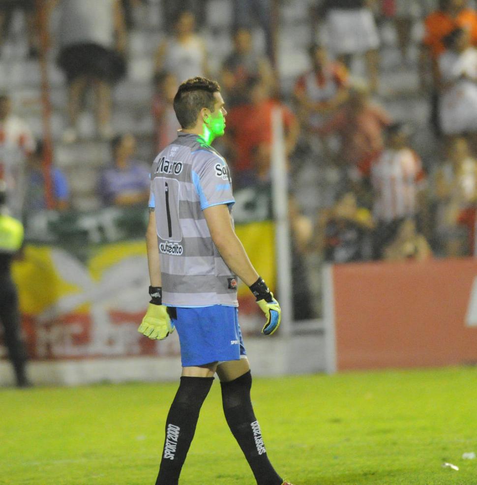 UNA FIJA. Martín Perelman fue el arquero al que los hinchas castigaron con el láser directo a los ojos, desde las tribunas.