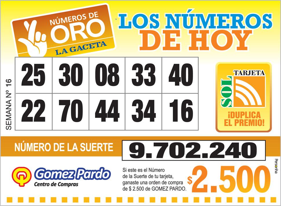 Los Números de Oro de LA GACETA del 25 de febrero de 2026